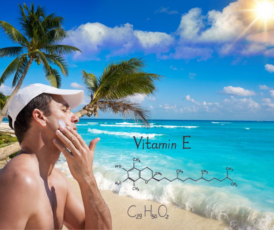 La vitamina E beneficia la piel seca, sensible y madura con sus propiedades antioxidantes, hidratantes y reparadoras.